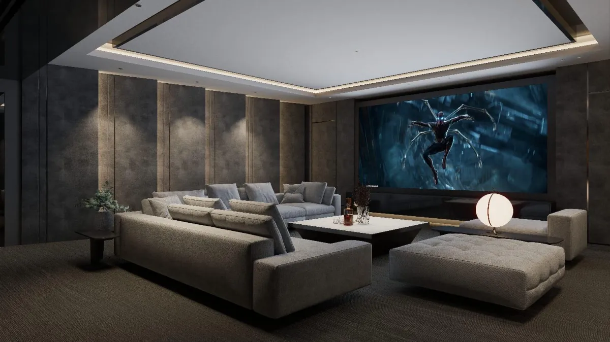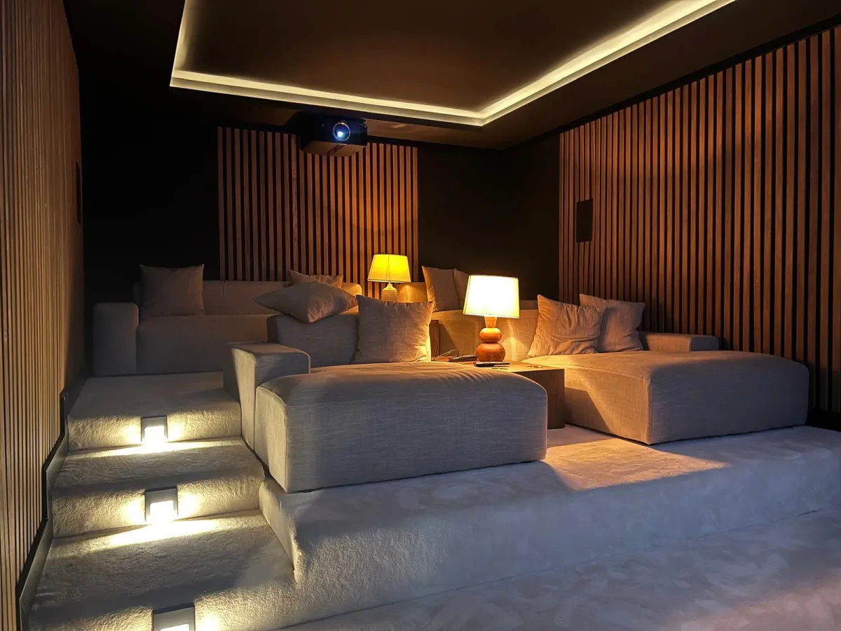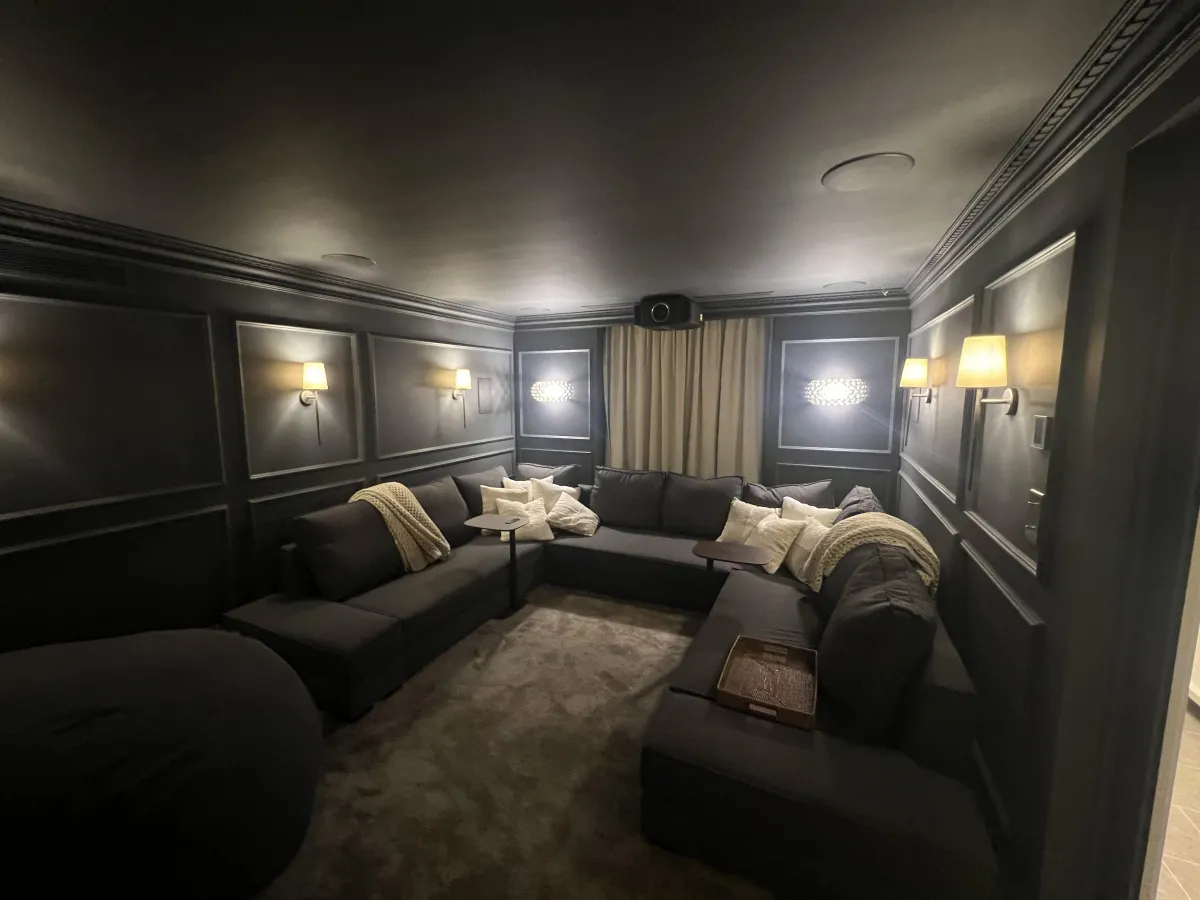 Acoustic treatments that absorb, reflect, and shape sound like a commercial cinema